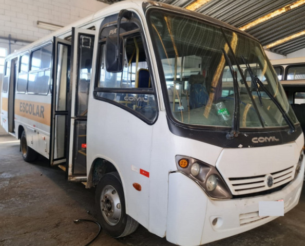 Descrição do Bem Micro Ônibus Marca: Comil Modelo: Piá Ano Fabricação/Modelo: 2008/2008 Cor: Branca Lugares: 21 Lugares Combustível: Diesel Motor: Motor Volks 9-150 Portas: 2 Portas Obs.: Porta Pacote, Bagageiro, Cortinas